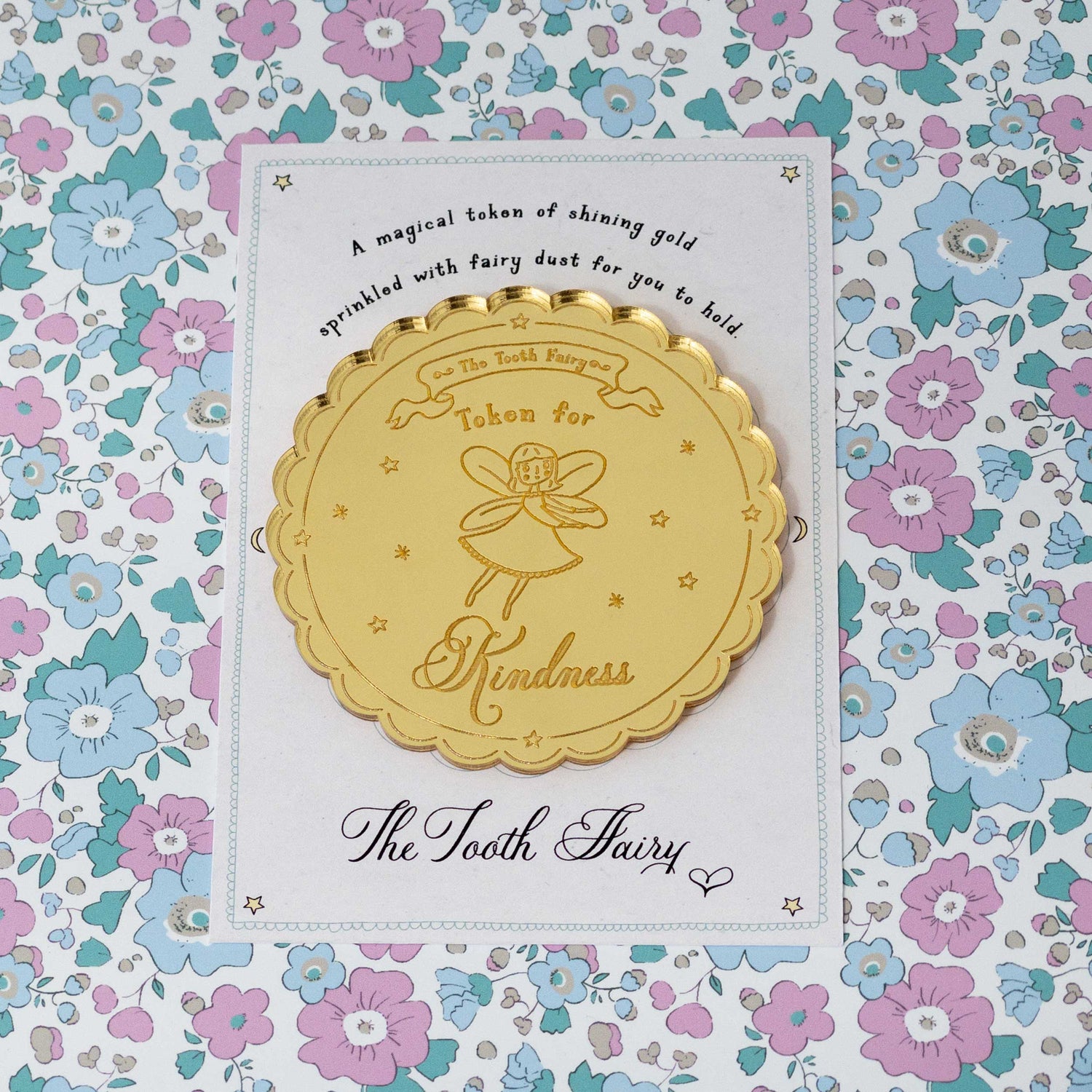 Imagine your child discovering this sparkling gold or pink token from the Tooth Fairy. You can choose the token to be laser etched with Kindness, Courage, Resilience or your choice. This 6cm x 6cm token makes a magical addition to a Tooth Fairy letter or a Tooth Fairy receipt.