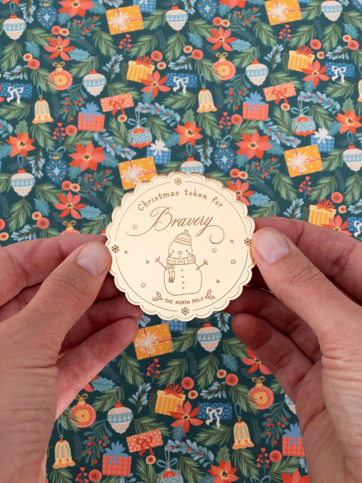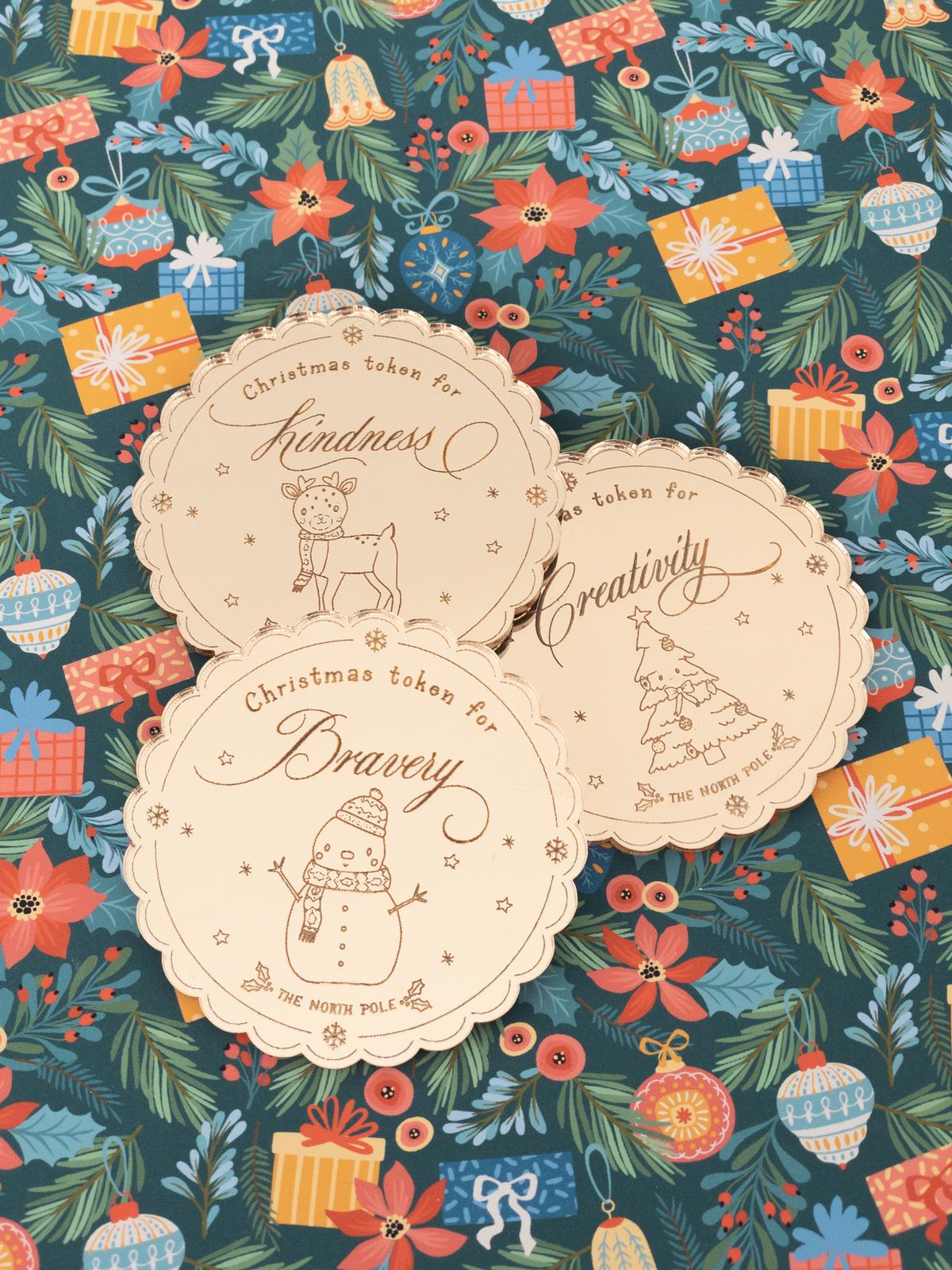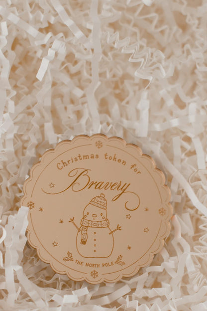 You can choose the token to be laser etched with Bravery, Kindness, Creativity or your choice. This 6cm x 6cm gold mirrored token is sure to sprinkle magic this Christmas!