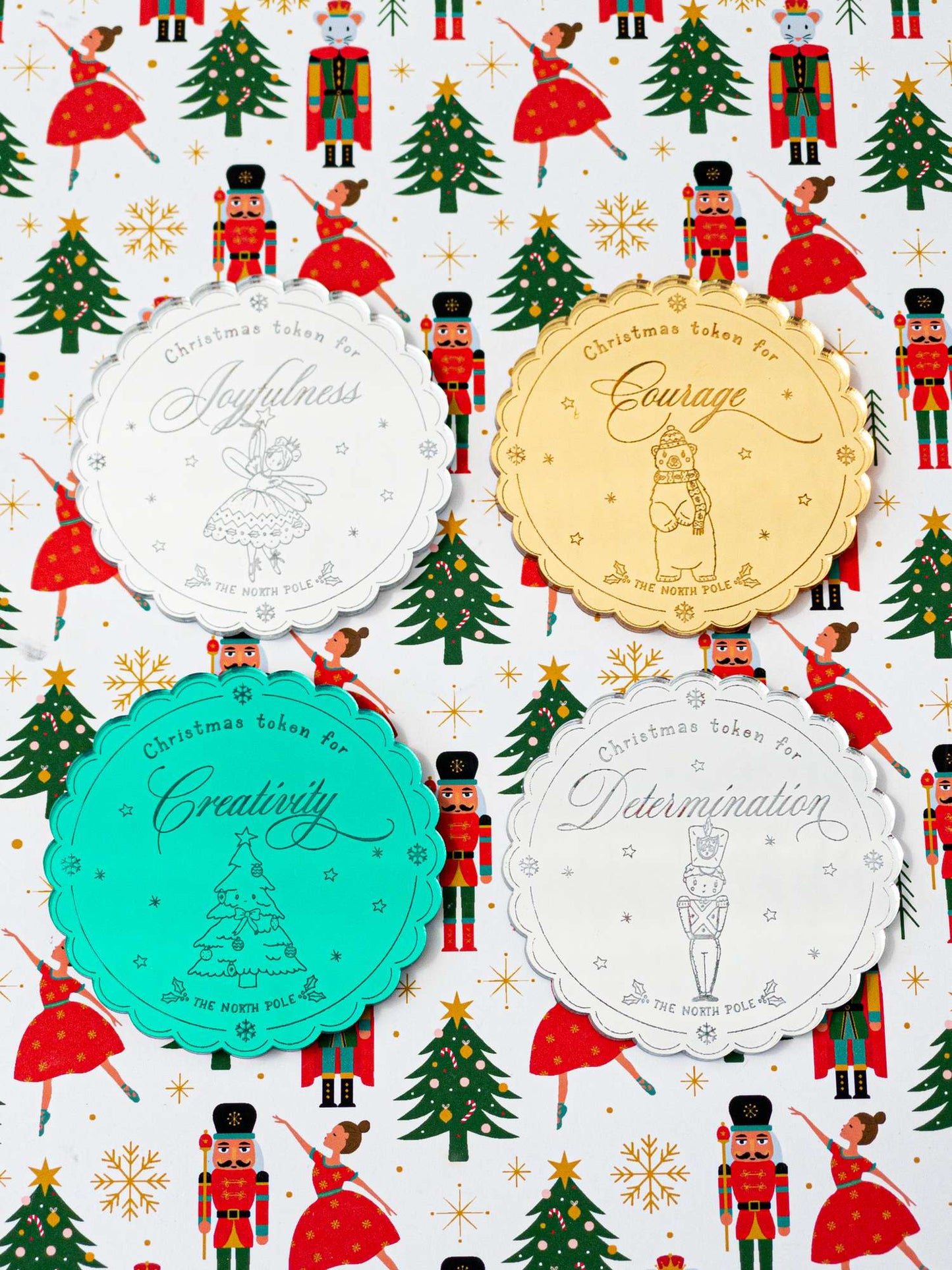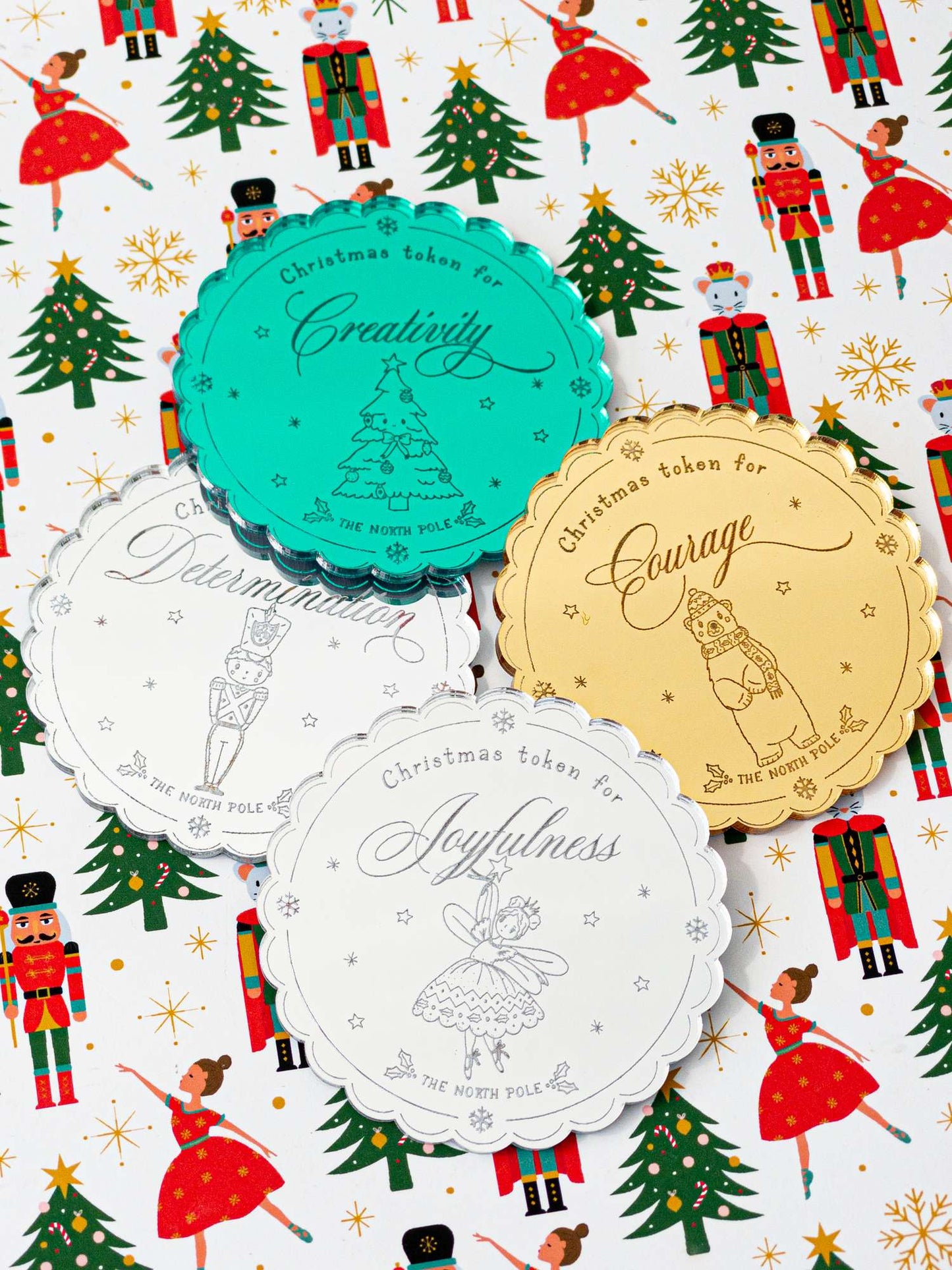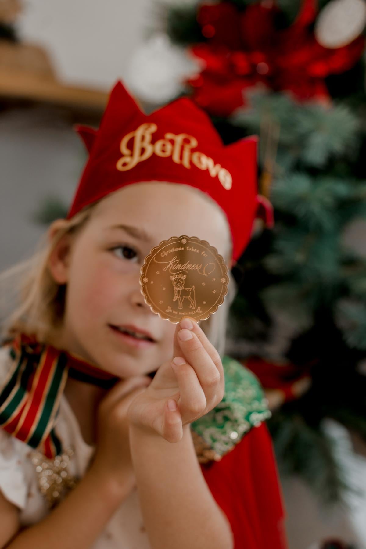 You can choose the token to be laser etched with Bravery, Kindness, Creativity or your choice. This 6cm x 6cm gold mirrored token is sure to sprinkle magic this Christmas!