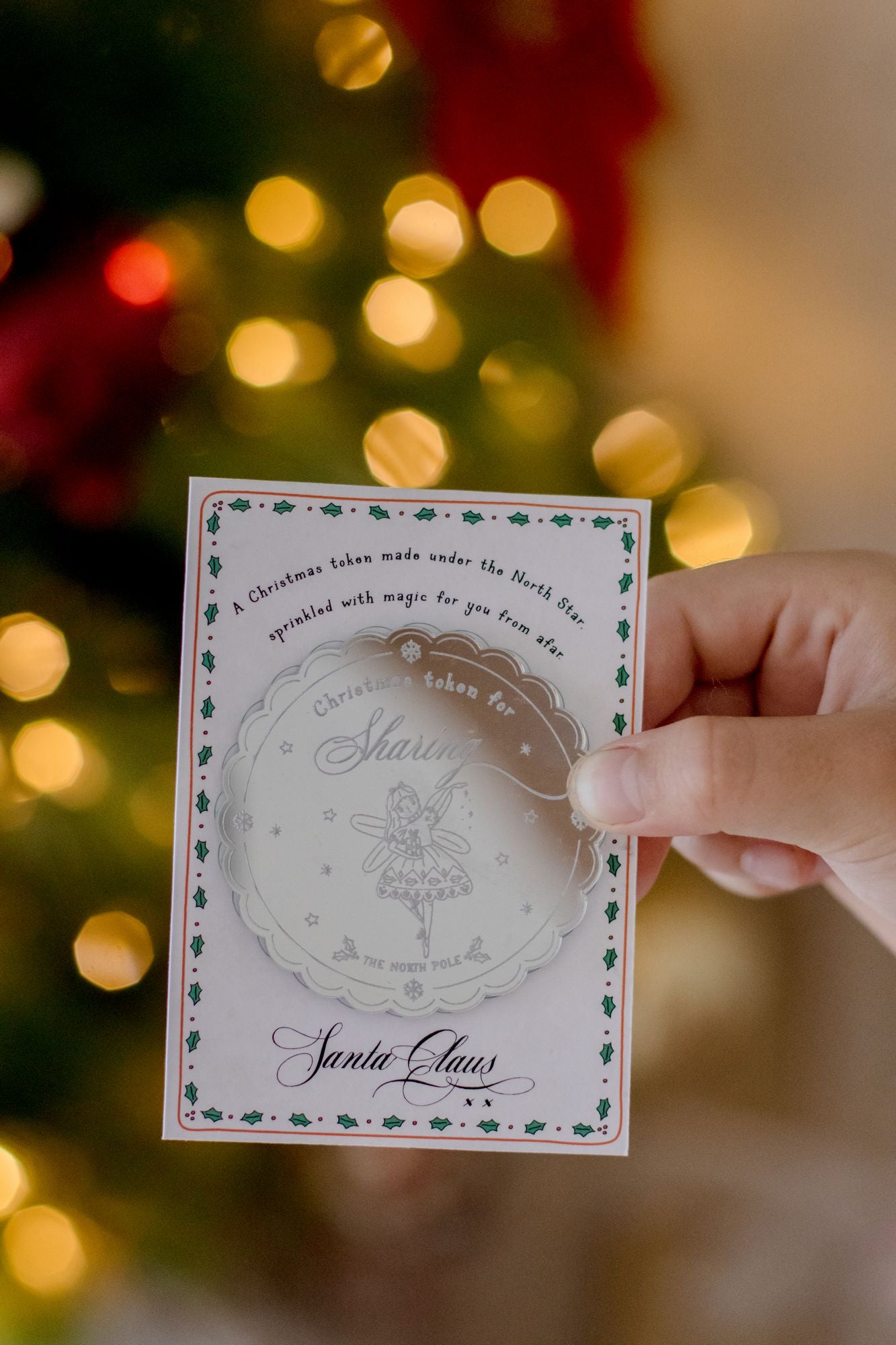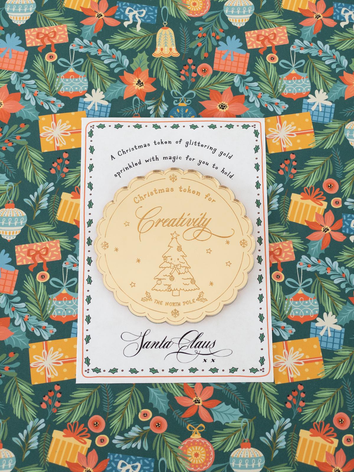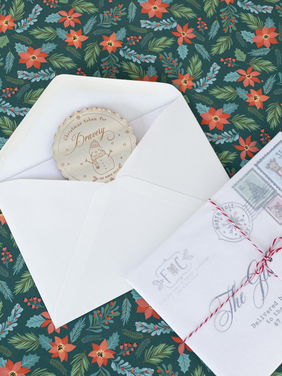 - Includes an A7 printed note from Santa Claus with a spot to place the token