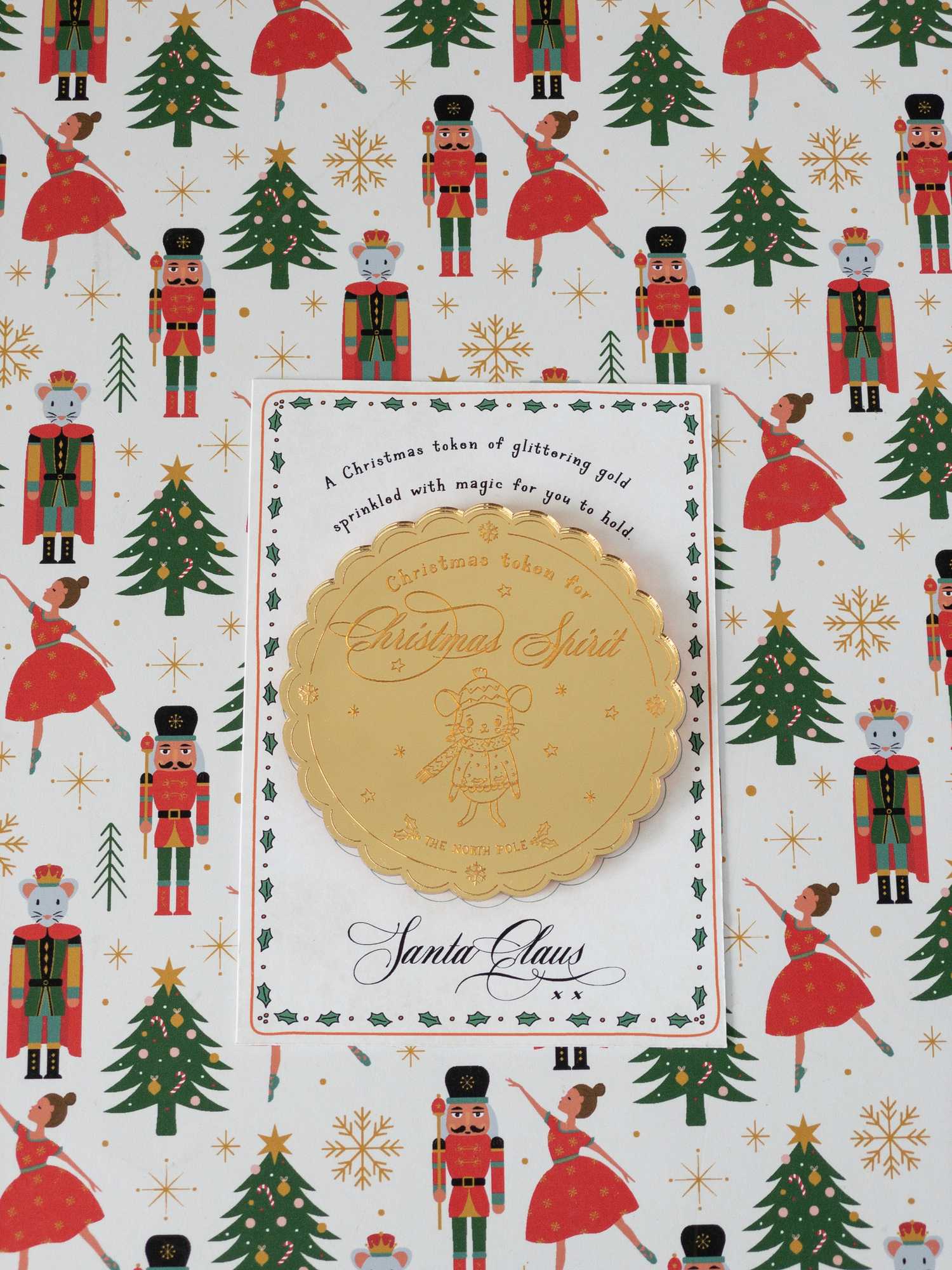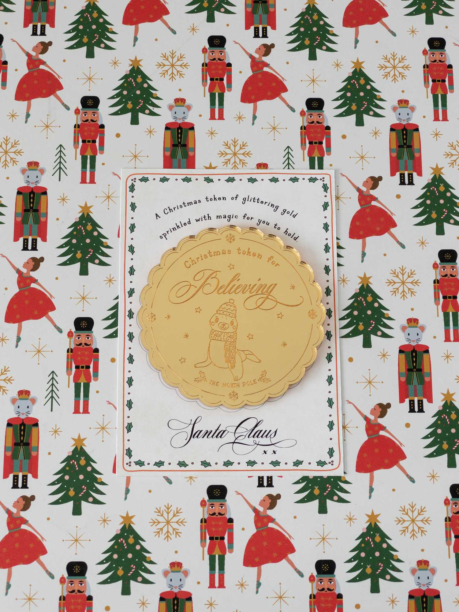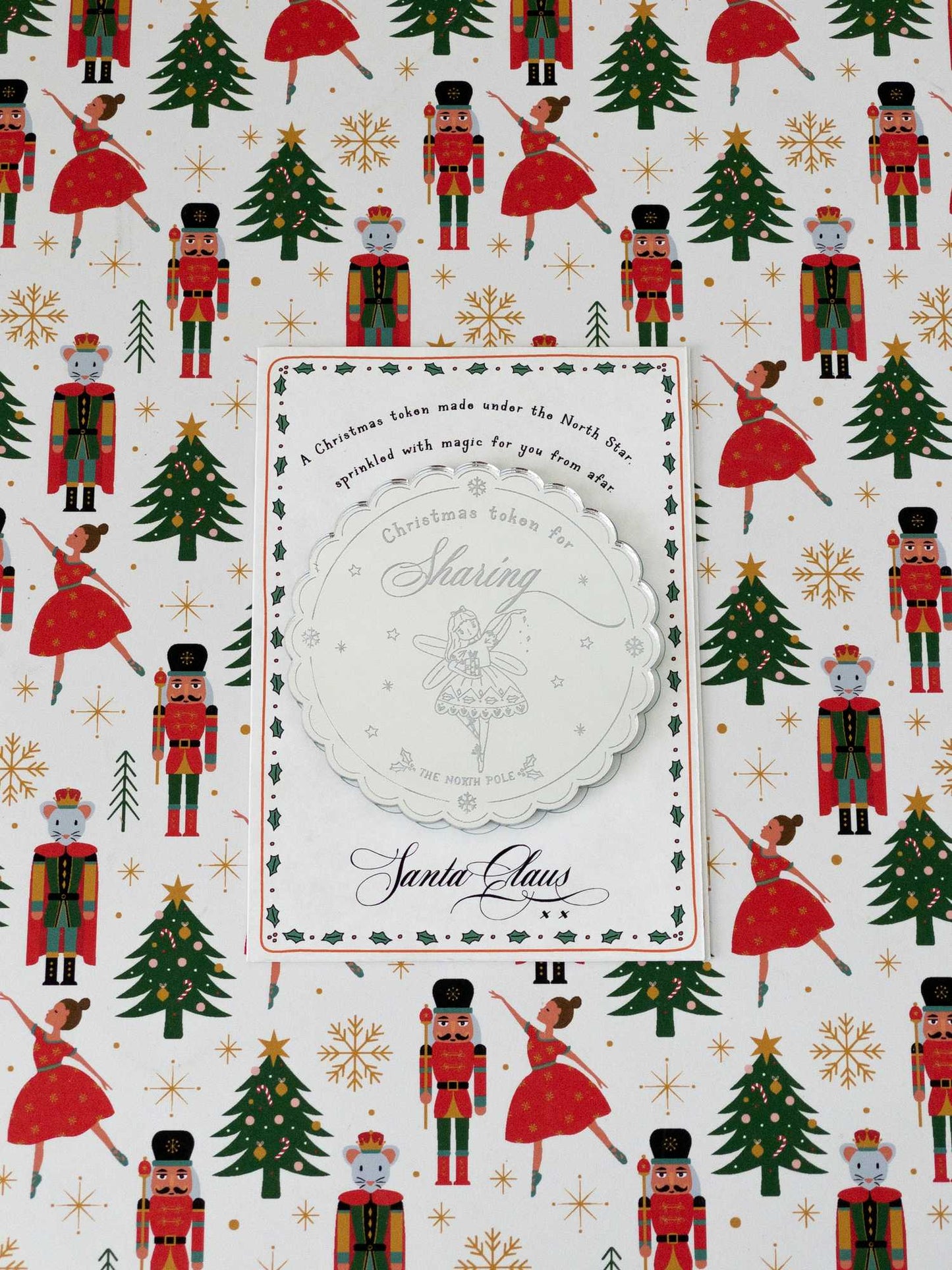 - Includes an A7 printed note from Santa Claus with a spot to place the token