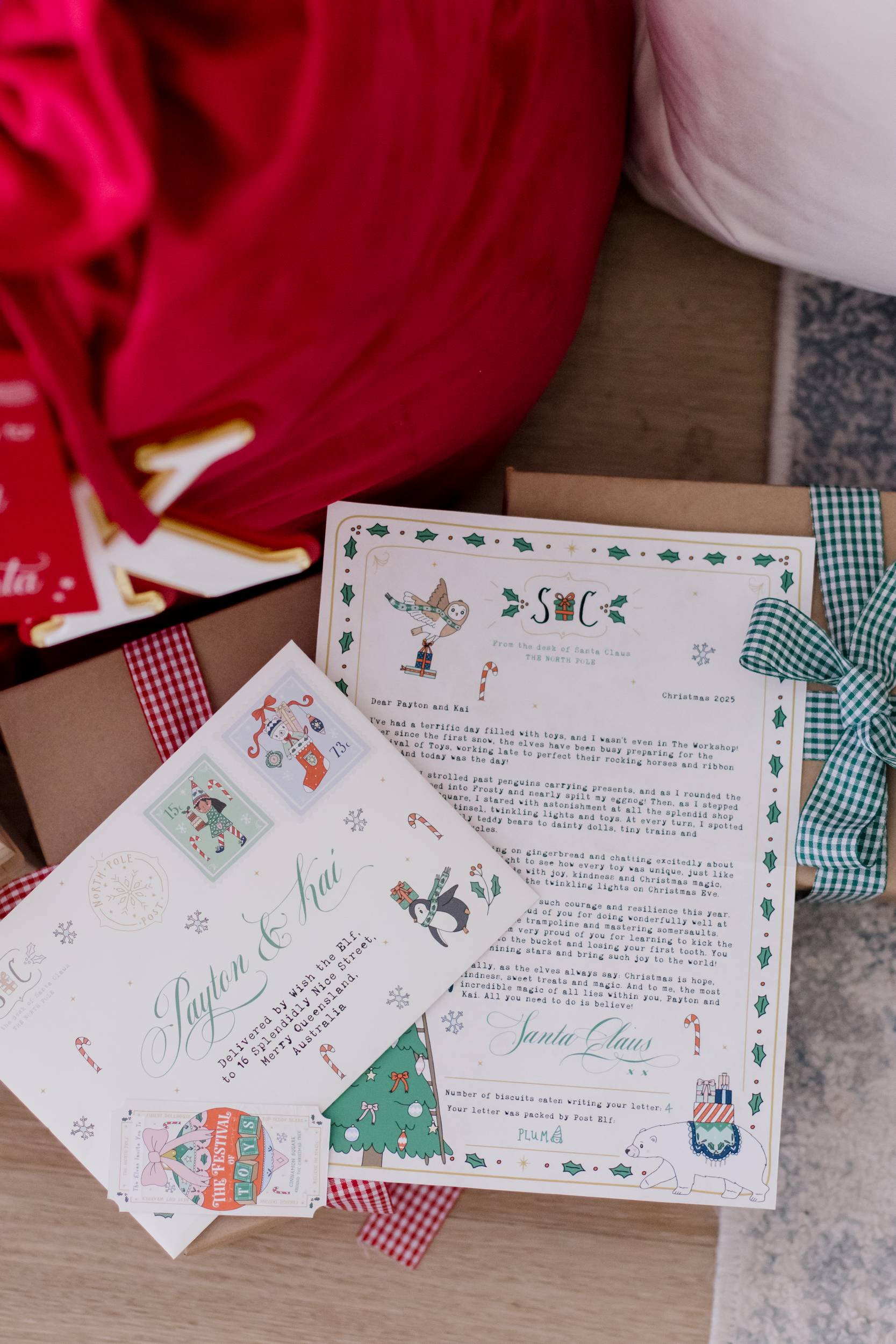 In this year's Santa letter, he writes about going to the Festival of Toys in Cinnamon Square and the elves excitement showcasing their best toys, plus the envelope has two new stamps., plus the envelope has two new stamps. Letters can be customised from Father Christmas and up to three children can be included in one letter. Please note, some photos show previous year's Santa letters.
