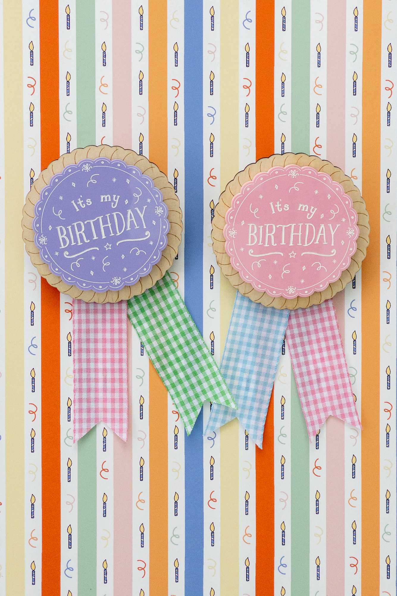 Do you remember wearing a special birthday badge as a child? Now you can recreate the magic with your little one and this beautiful birthday rosette. It comes with a coloured acrylic centre with your child's age or 'it's my birthday', your choice of gingham ribbon and a pin back. Plus it comes attached to a backing board from the Birthday Fairy - magic!