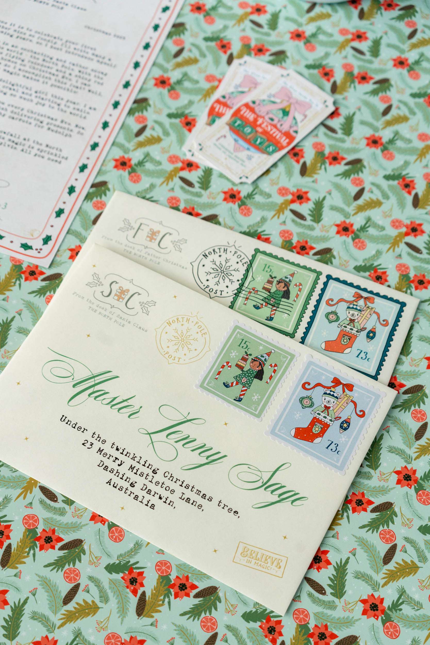 - The envelope includes your child’s name and address (supplied by you) and the official North Pole Post logo and stamps.