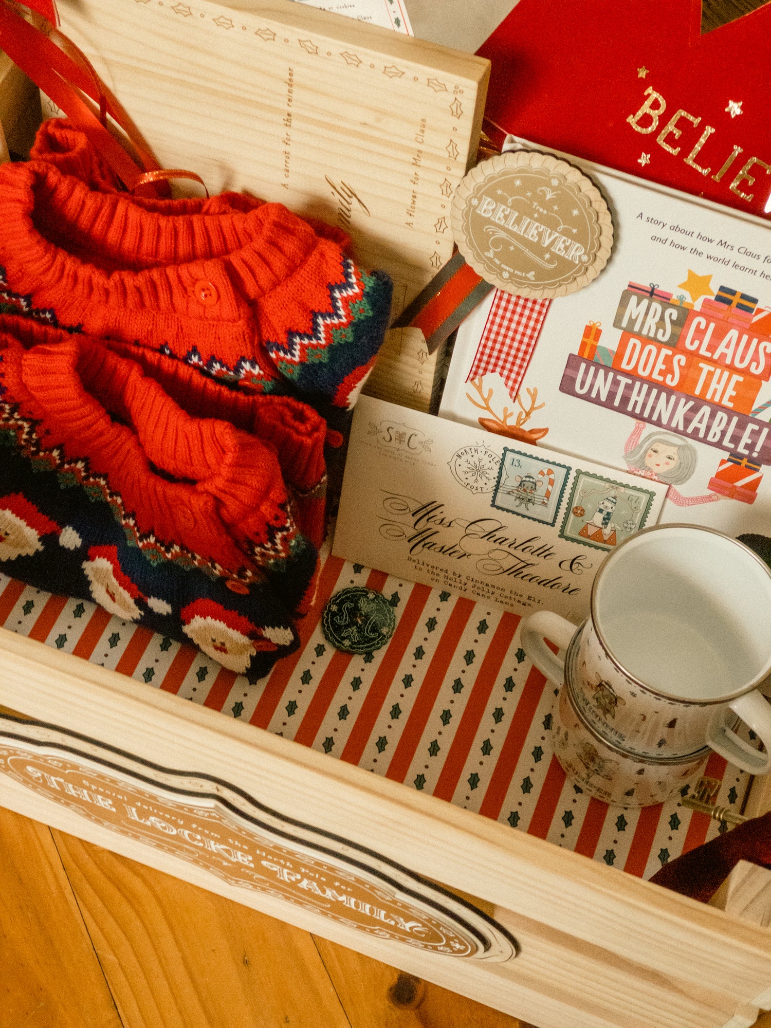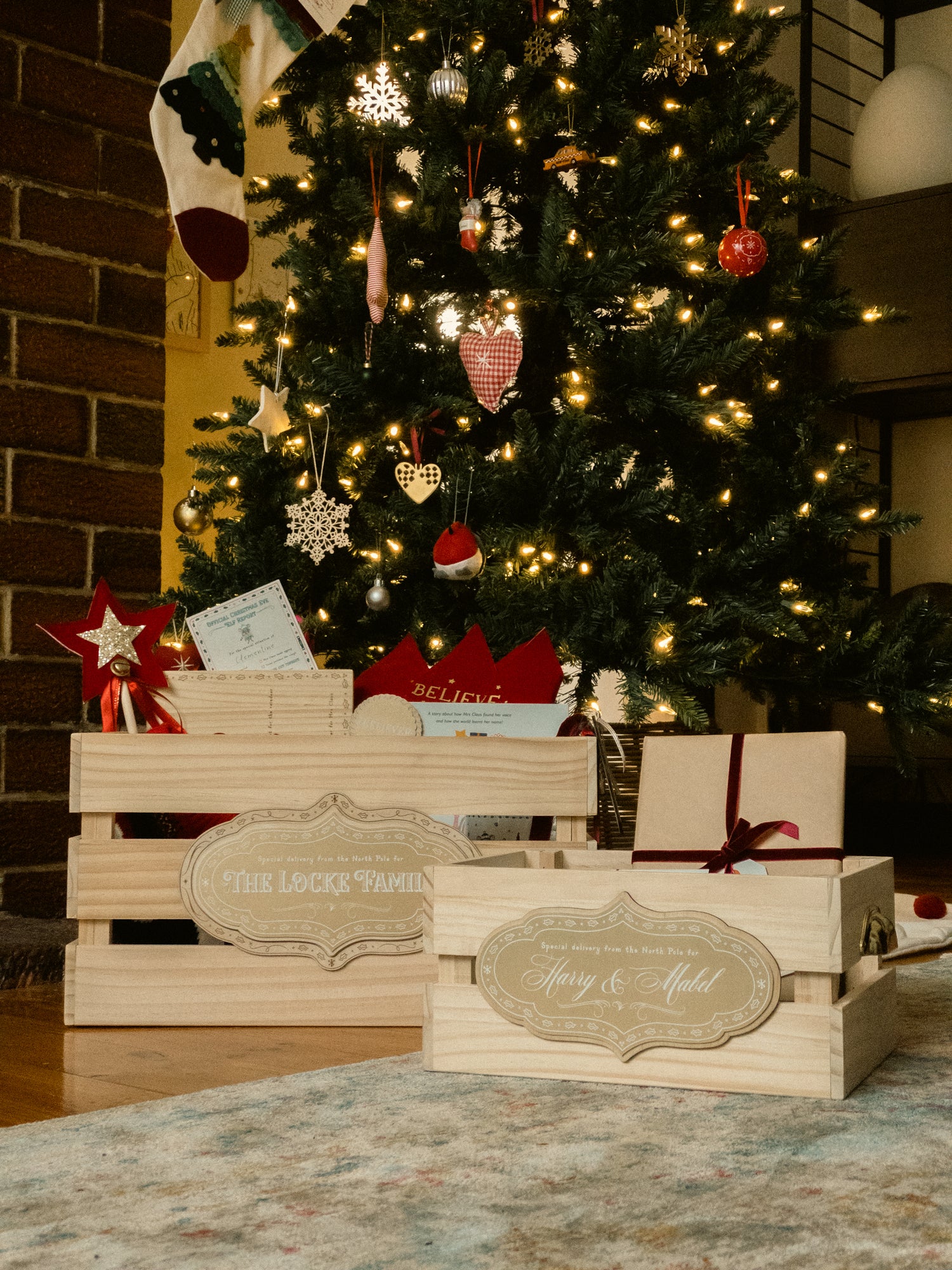 A beautiful heirloom crate with all the magical trimmings. Imagine your little ones delight spotting it under the tree on December 1st or Christmas Eve!