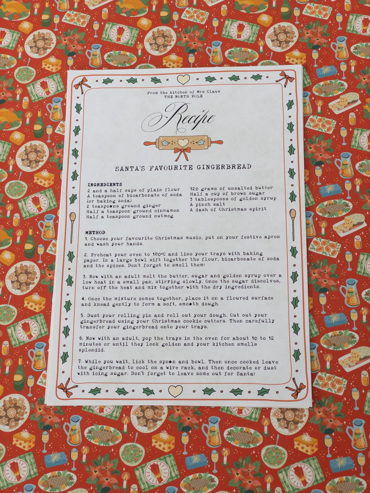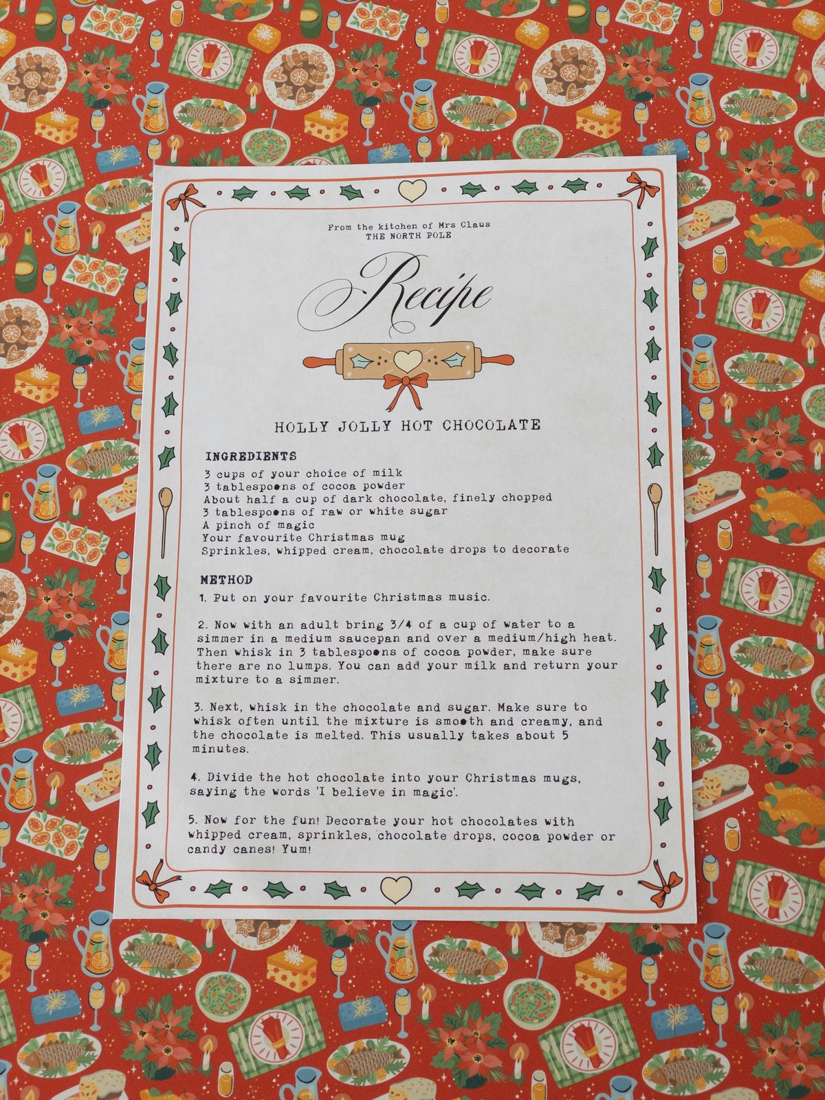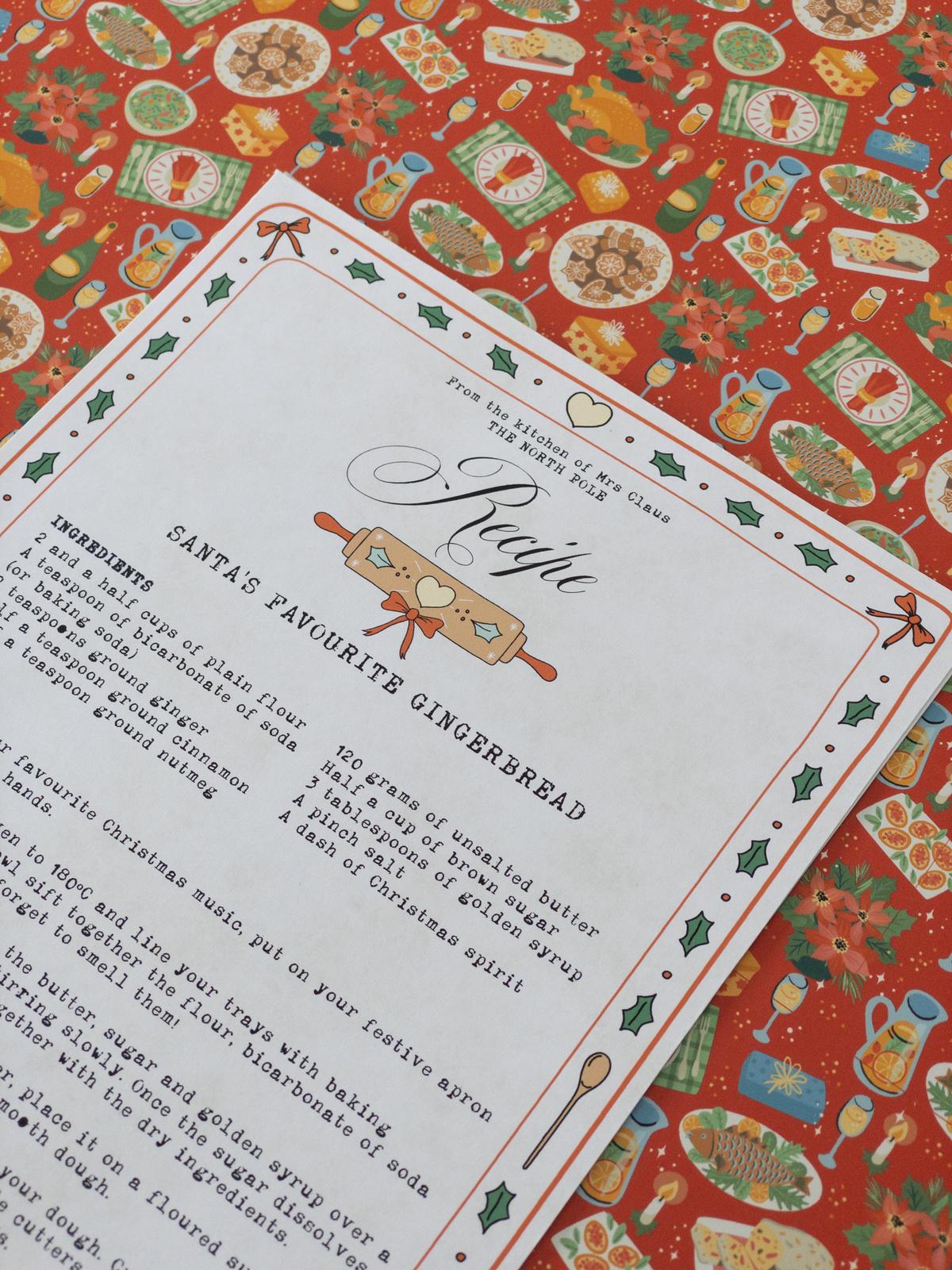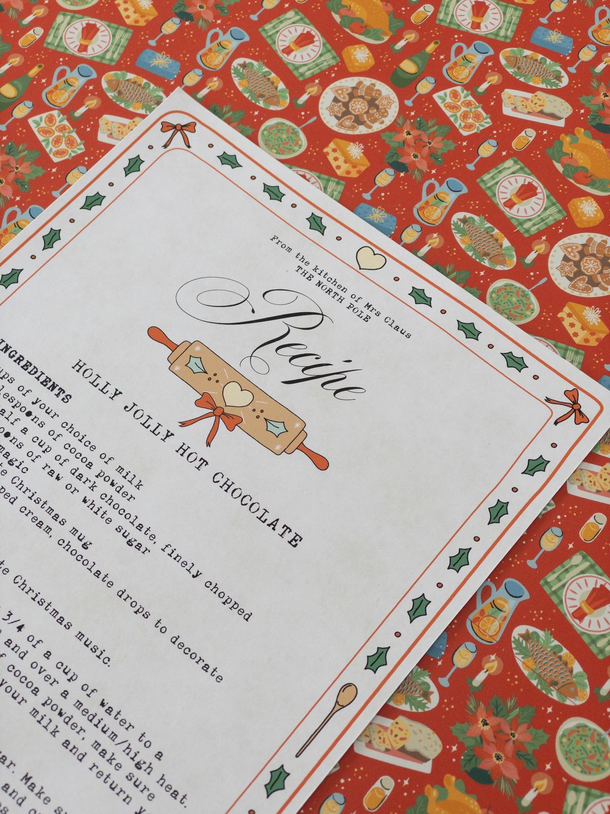 Mrs Claus is sharing her delicious Christmas recipes, perfect to make at Christmastime! You can choose from five different recipes, and they are all printed on A5 parchment paper with Mrs Claus' official recipe card letterhead.