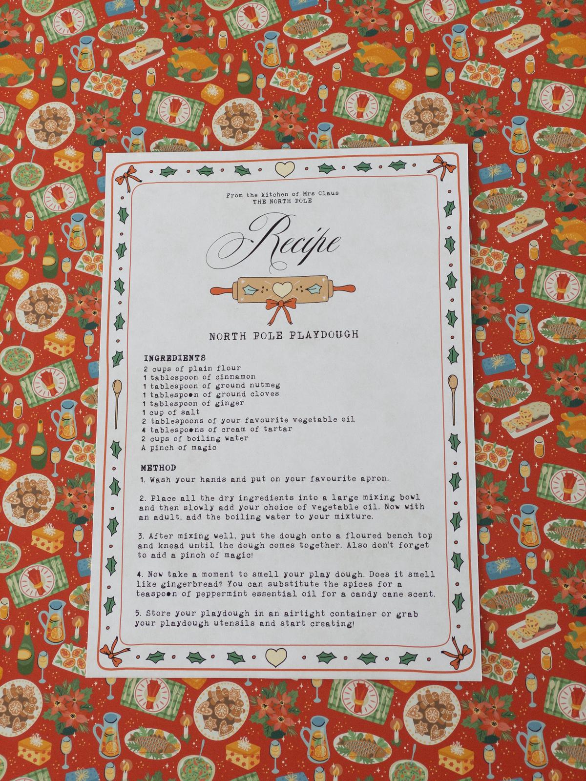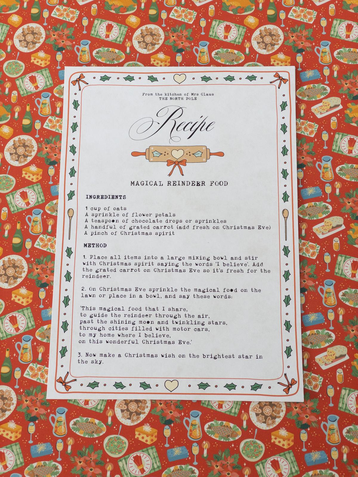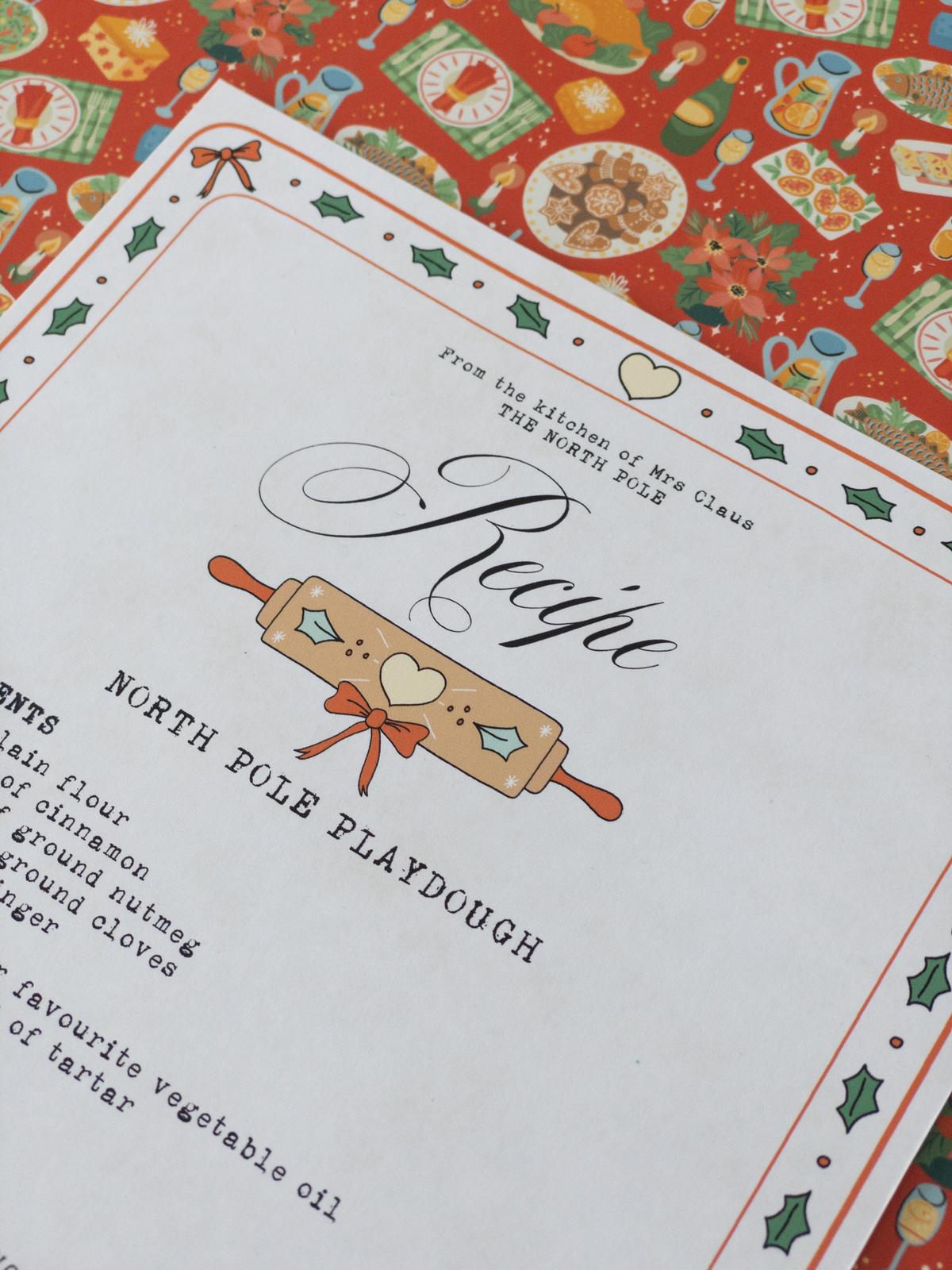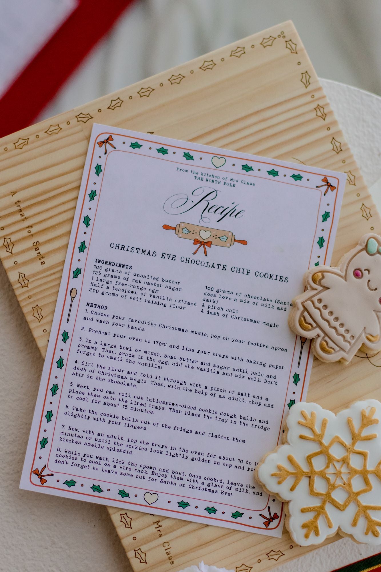 Mrs Claus is sharing her delicious Christmas recipes, perfect to make at Christmastime! You can choose from five different recipes, and they are all printed on A5 parchment paper with Mrs Claus' official recipe card letterhead.