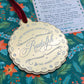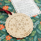 – Attached to a wooden scalloped disc which is etched on the back with a snowflake and all important, made in Santa's Workshop