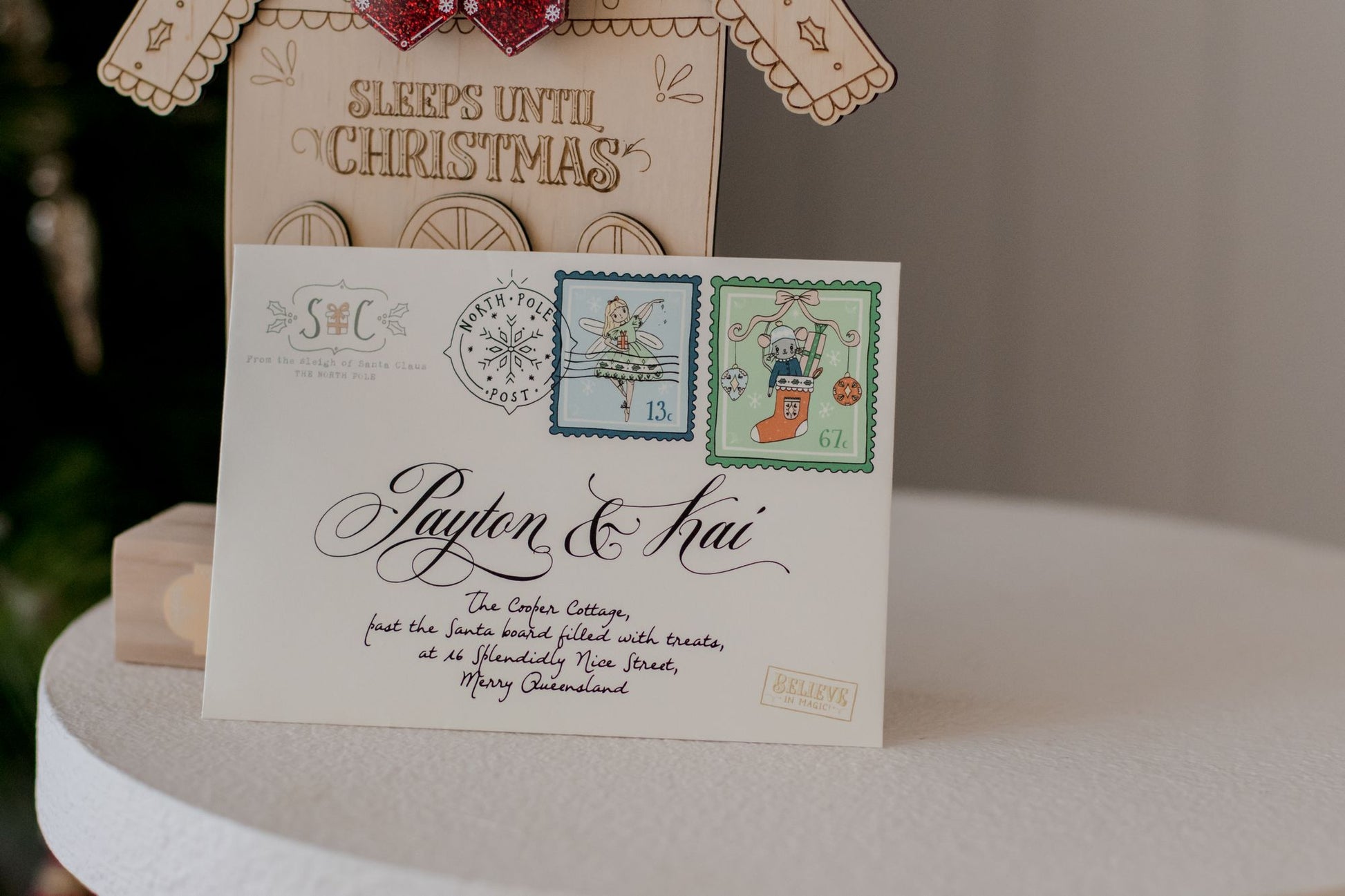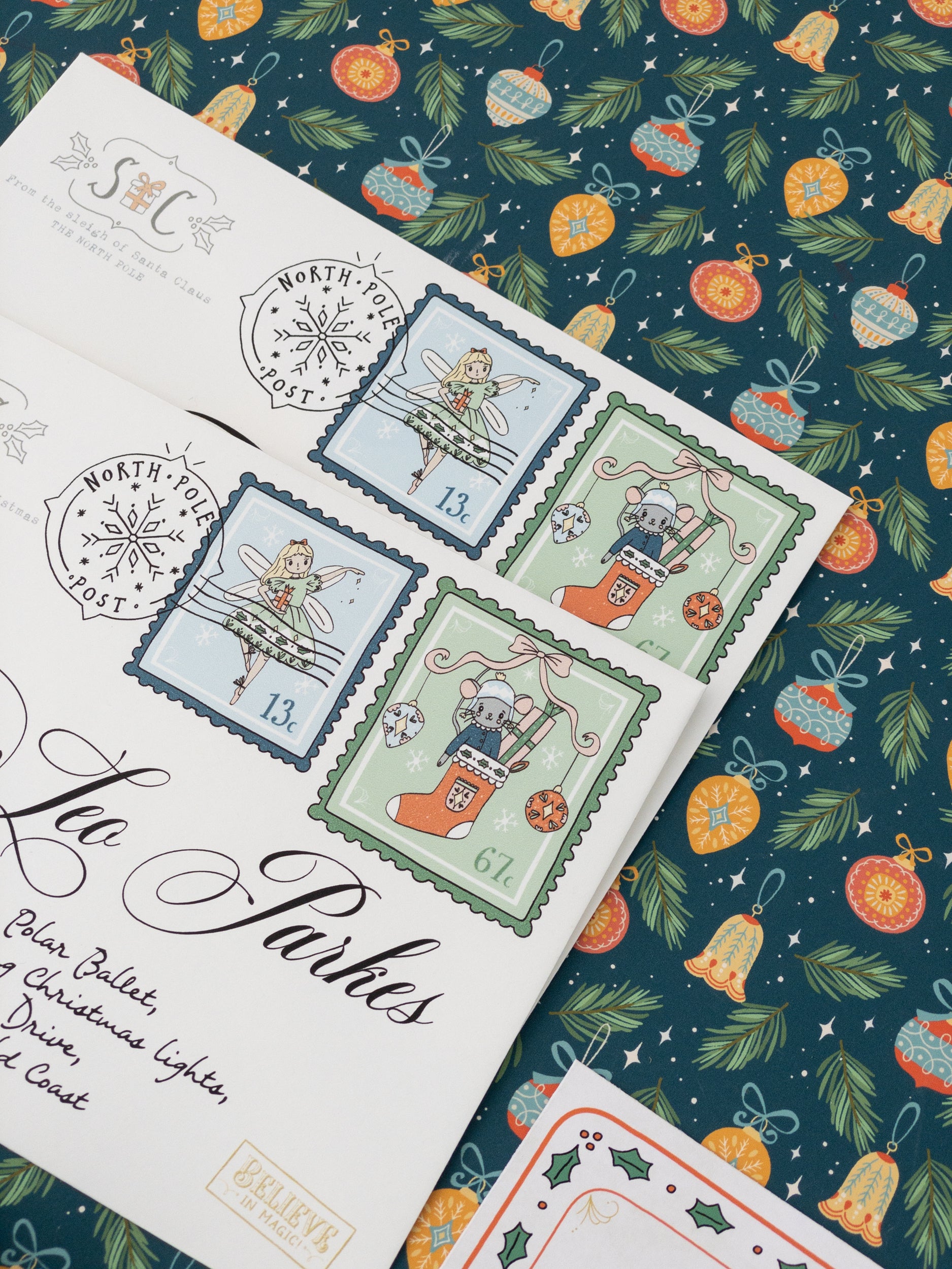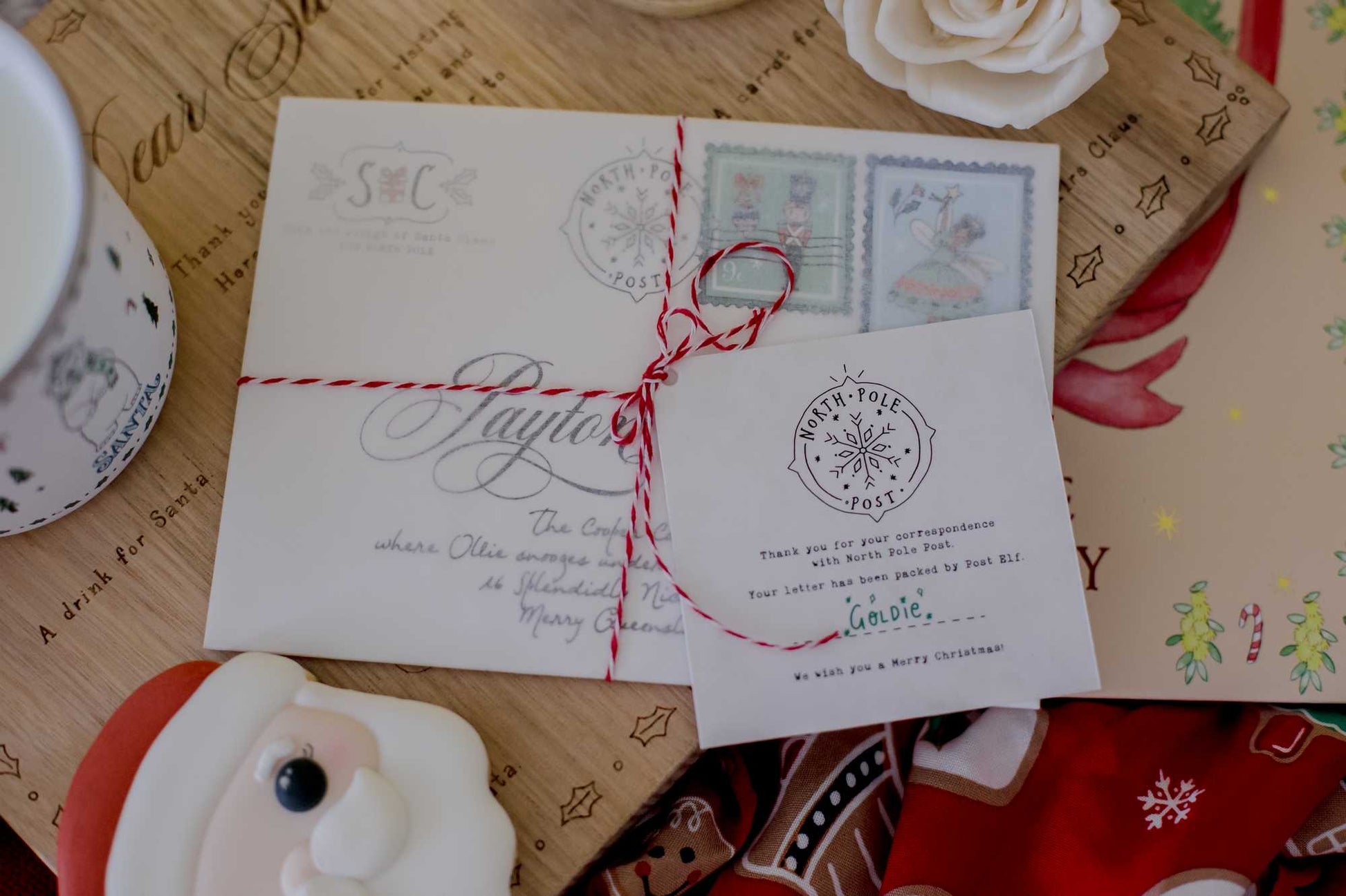 – The envelope includes your child’s name and address and the official North Pole Post logo and stamps.
