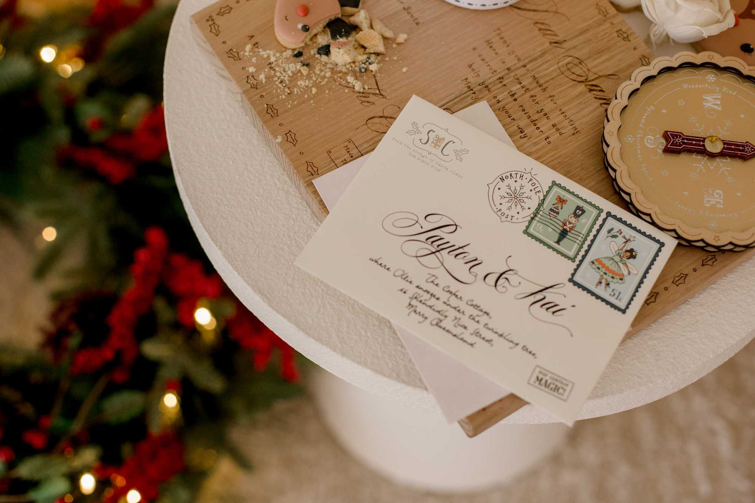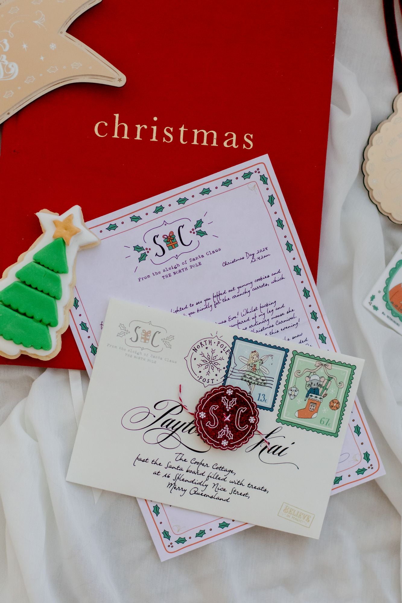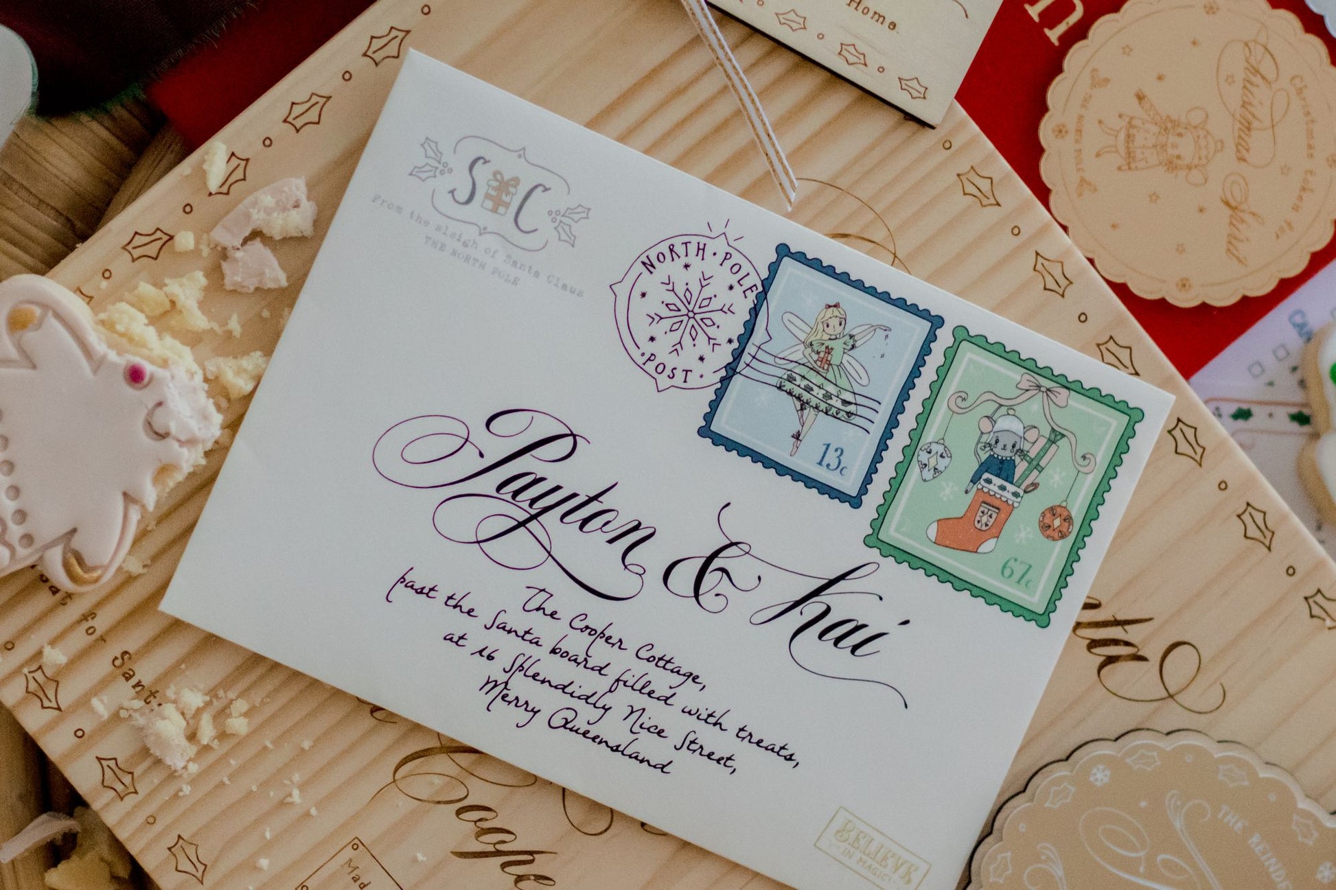 – The envelope includes your child’s name and address and the official North Pole Post logo and stamps.