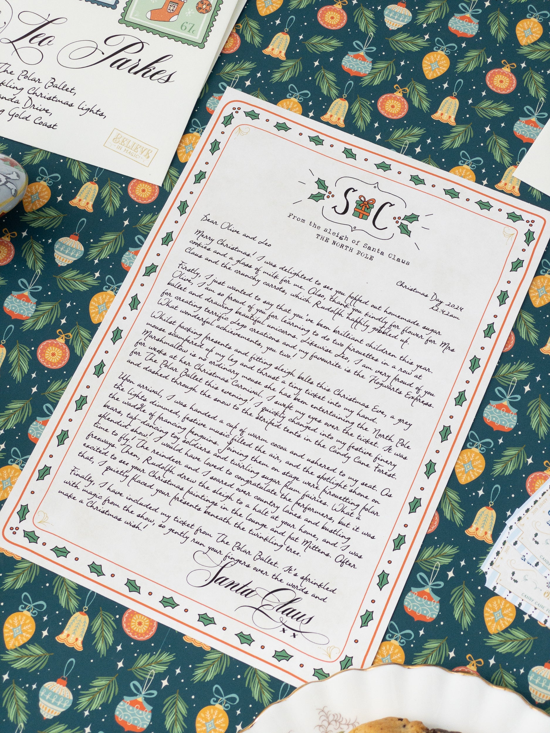 The Deluxe Christmas Morning Santa letter is for your child to discover next to Santa's half-eaten biscuits on Christmas morning! In this magical and personalised letter from Santa, he mentions an achievement from your child's year that he is proud of and other custom details.