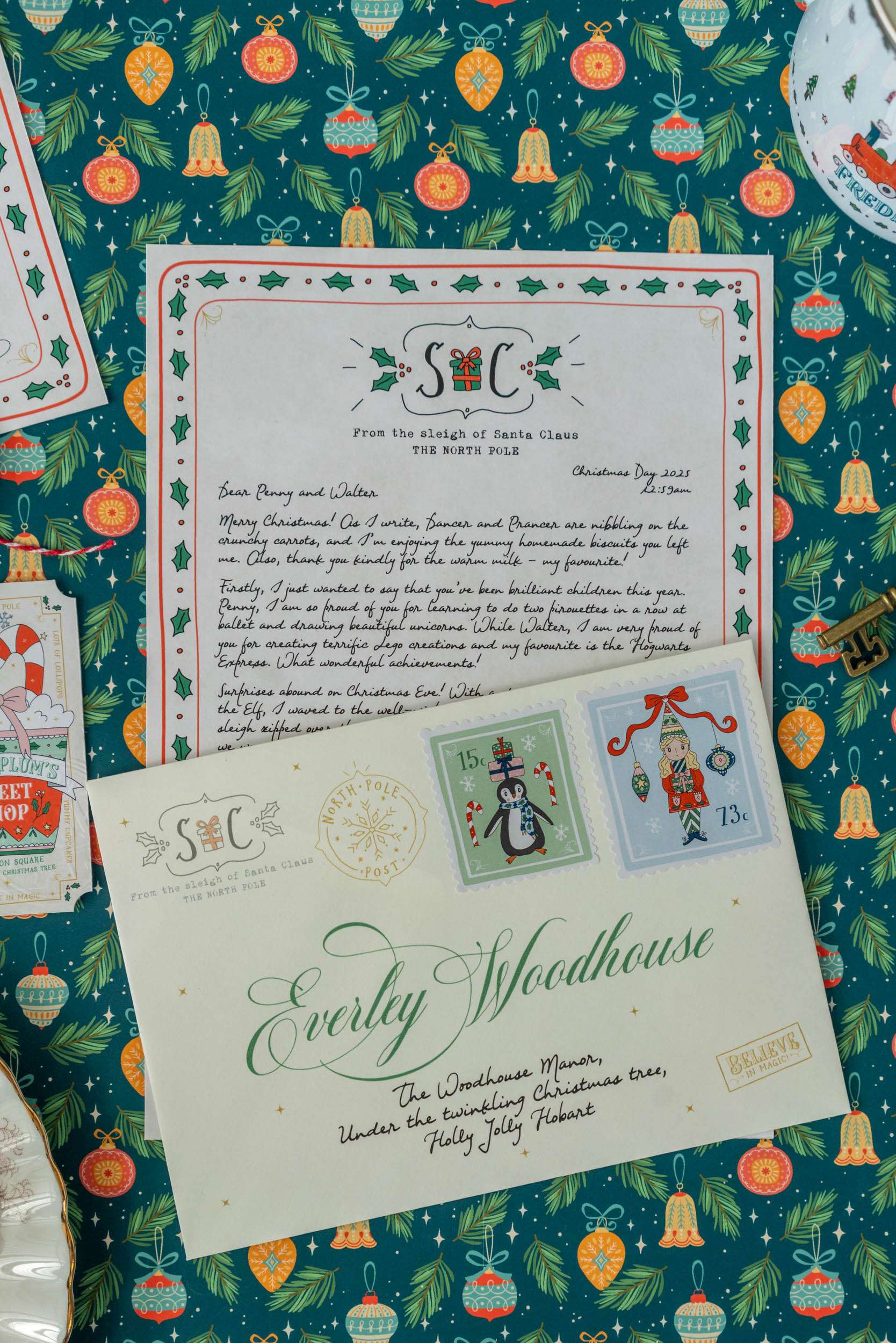 – The envelope includes your child’s name and address and the official North Pole Post logo and stamps.